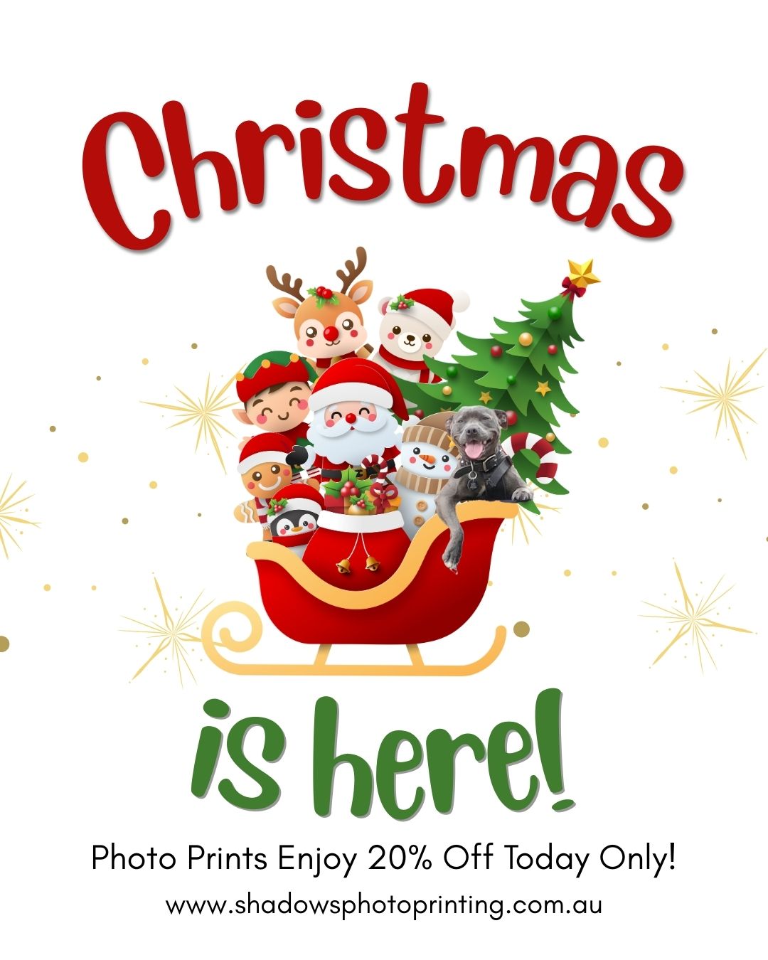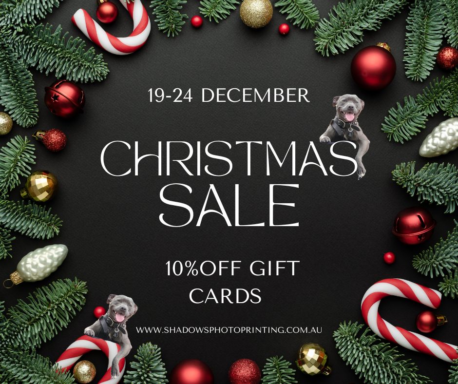 | This Christmas, turn your favorite moments into keepsakes with Shadows Photo Printing! From 13th – 16th December 2025, enjoy 15% off all enlargements and posters — no code needed! ✨ 💳 Afterpay available — flexible payments to make Christmas stress-free. Afterpay late fees, eligibility criteria and terms & conditions apply. Visit afterpay.com . 🚚 Australia-wide delivery — get your prints just in time for festive gifting! Order today at www.shadowsphotoprinting.com.au | 🐾 Meet Joblin! 💕 |  | Shadow’s legacy at Shadows Photo Printing shaped every corner of our small family business with her love, loyalty, and service. Though she’s no longer with us, her pawprints guide everything we do. Today, we welcome Joblin, a spirited female Aussie Bulldog with a name full of heart, grit, and soul. Inspired by Bonnie and Clyde — young, wild, and bound by a love that burned brighter than the law — and by the fearless, soulful Janis Joplin, Joblin carries both fire and freedom in her spirit. For a fleeting moment, Bonnie and Clyde found normalcy in a small apartment in Joplin, Missouri — laughing, cooking, hiding from the world. Their love felt almost ordinary… but ordinary wasn’t their destiny. Legend eventually called them back. Janis Joplin’s raw, emotional voice shook rooms and hearts, leaving behind a powerful legacy of courage and music. Together, these inspirations give Joblin a name rooted in heart, grit, passion, and soul. Over the next 5–10 months, Joblin will train, explore, and create countless photo-worthy memories as she works toward being assessed to begin training as Terri’s next service dog. Big paws to fill — but a spirit more than ready to shine. Here’s to new beginnings, brave hearts, and adventures ahead! 💖🐾 | 🎄 Last Shipping Day for Christmas! 🎄 |  | All orders are being shipped on 19th December, with the hope that they arrive in time for Christmas. To help us get your gifts to you: Large orders: please have them in by 15th December for shipping on the 19th. Smaller orders: please have them in by 16th December for shipping on the 19th. Final cut-off: orders placed by 10 am on 19th December will be sent out for 2 pm dispatch.