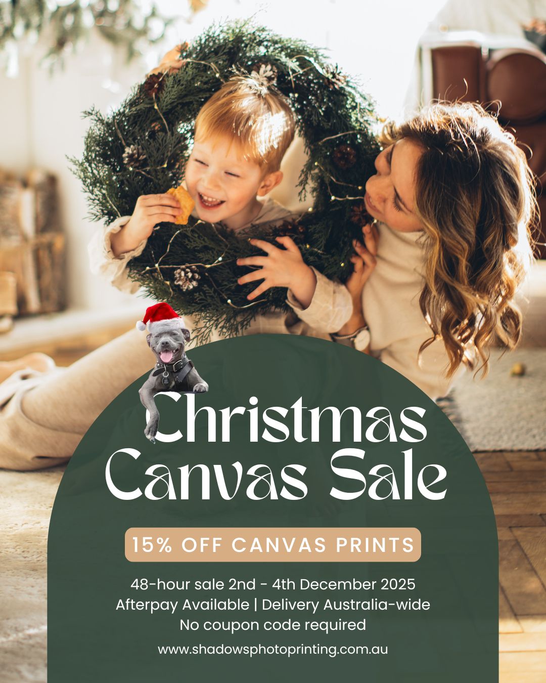 | 🎄✨ Christmas Canvas Sale – 15% OFF! ✨🎄 Deck your walls with your favorite memories this festive season! For 48 hours only, 2nd – 4th December 2025, enjoy 15% off all canvas prints at Shadows Photo Printing. 🎁 Why our canvases are extra special: Handcrafted in-house – from print to gallery-wrapped perfection, every canvas is lovingly made by our small family business. Ready to hang – straight from us to your wall, making the perfect gift or festive home update. Flexible payments – Afterpay available to make Christmas stress-free. Afterpay late fees, eligibility criteria and terms & conditions apply. Visit afterpay.com for full terms. Australia-wide delivery – we’ll bring the magic straight to your door.